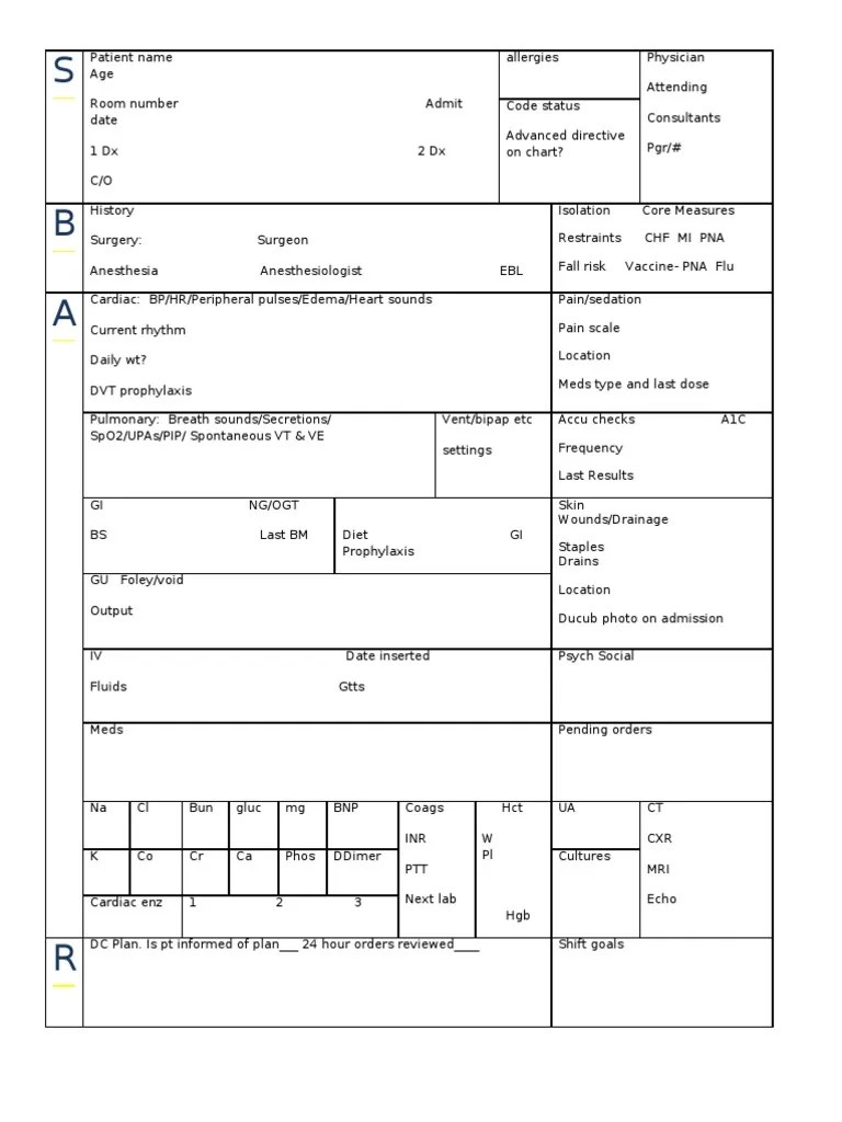 We received over 100 report sheet templates from nurses working in medsurg, icu, .